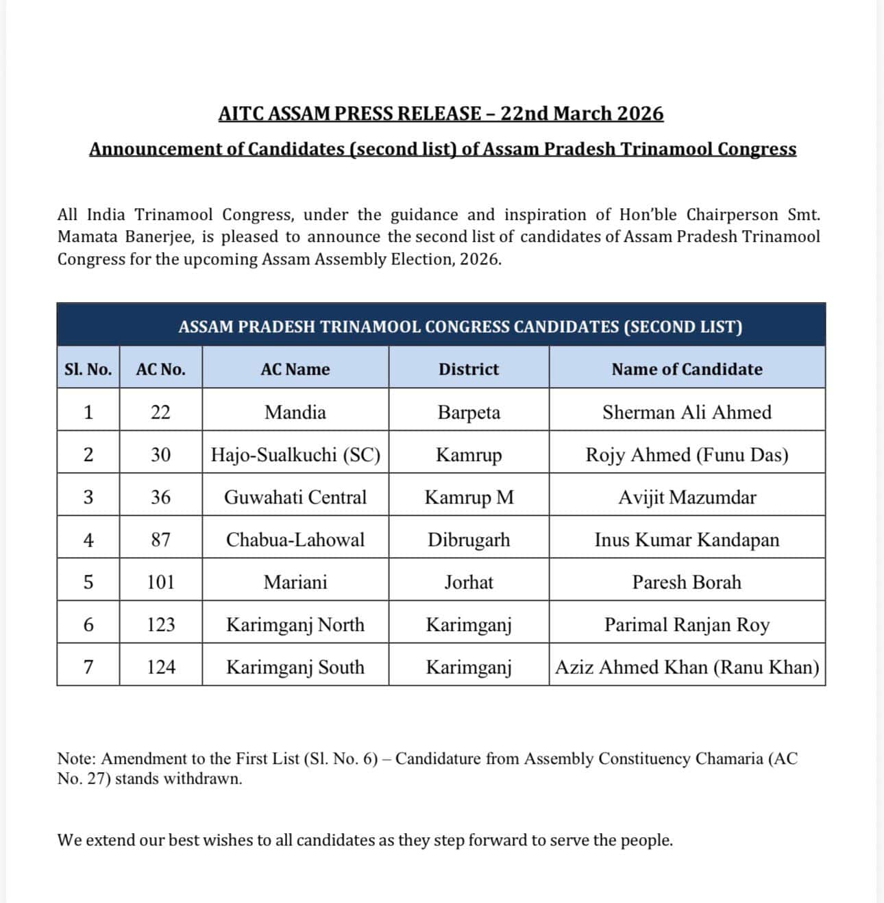 Assam TMC: অসমে 'একলা চলো নীতি', ১৭'র পর আরও ৭, অসম ভোটে দ্বিতীয় দফার প্রার্থী দিল তৃণমূল