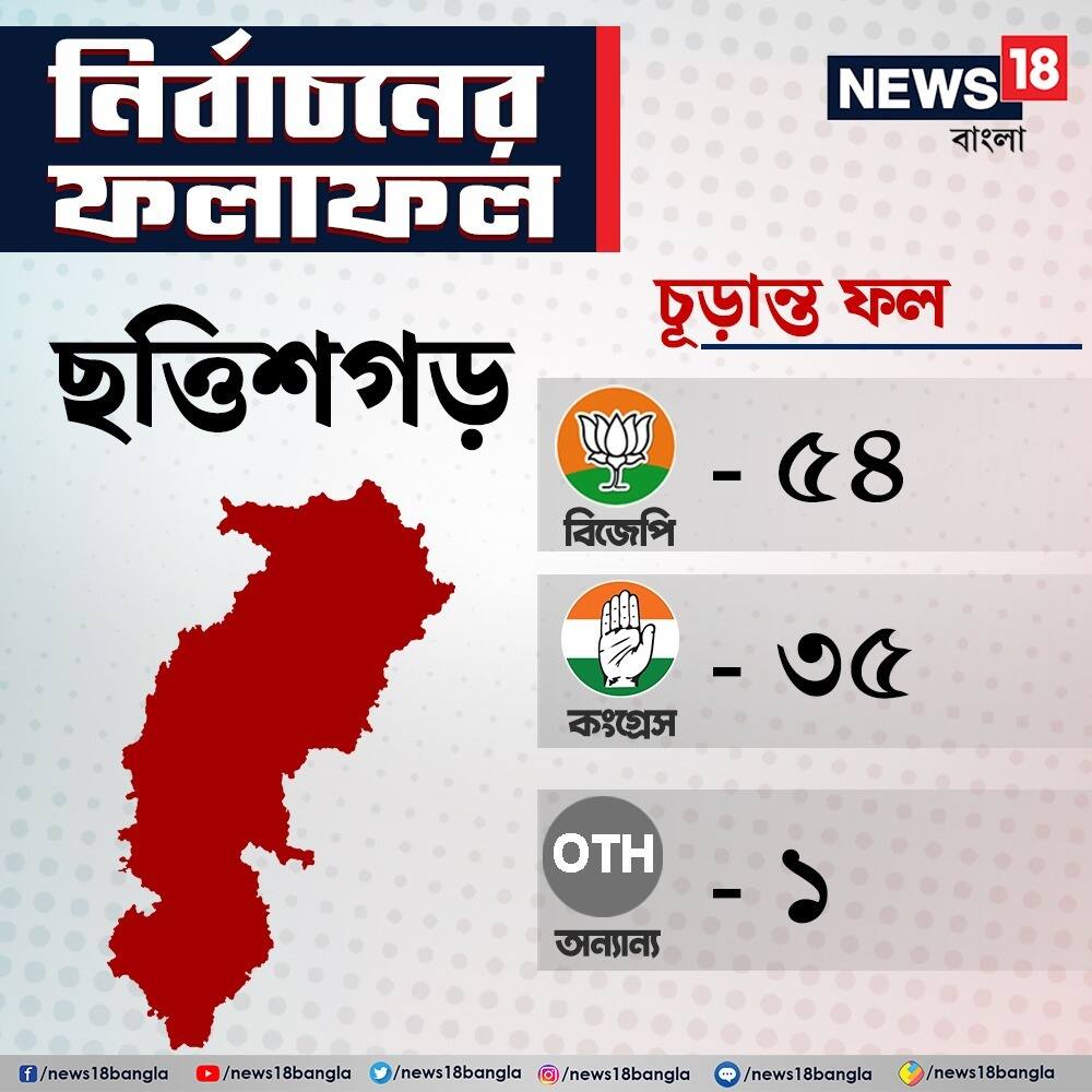 অধিকাংশ বুথ ফেরত সমীক্ষারই ইঙ্গিত ছিল ছত্তিশগড়ে ক্ষমতা ধরে রাখতে পারবে কংগ্রেস৷ ক্ষমতা ধরে রাখা দূরে থাক, পাঁচ বছর সরকারে থাকার পর পদ্মকে কড়া চ্যালেঞ্জও ছুড়ে দিতে ব্যর্থ হাত৷ সব হিসেব উল্টে দিয়ে ছত্তিশগড় বিধানসভার ৯০টি আসনের মধ্যে ৫৪টি দখল করল বিজেপি৷