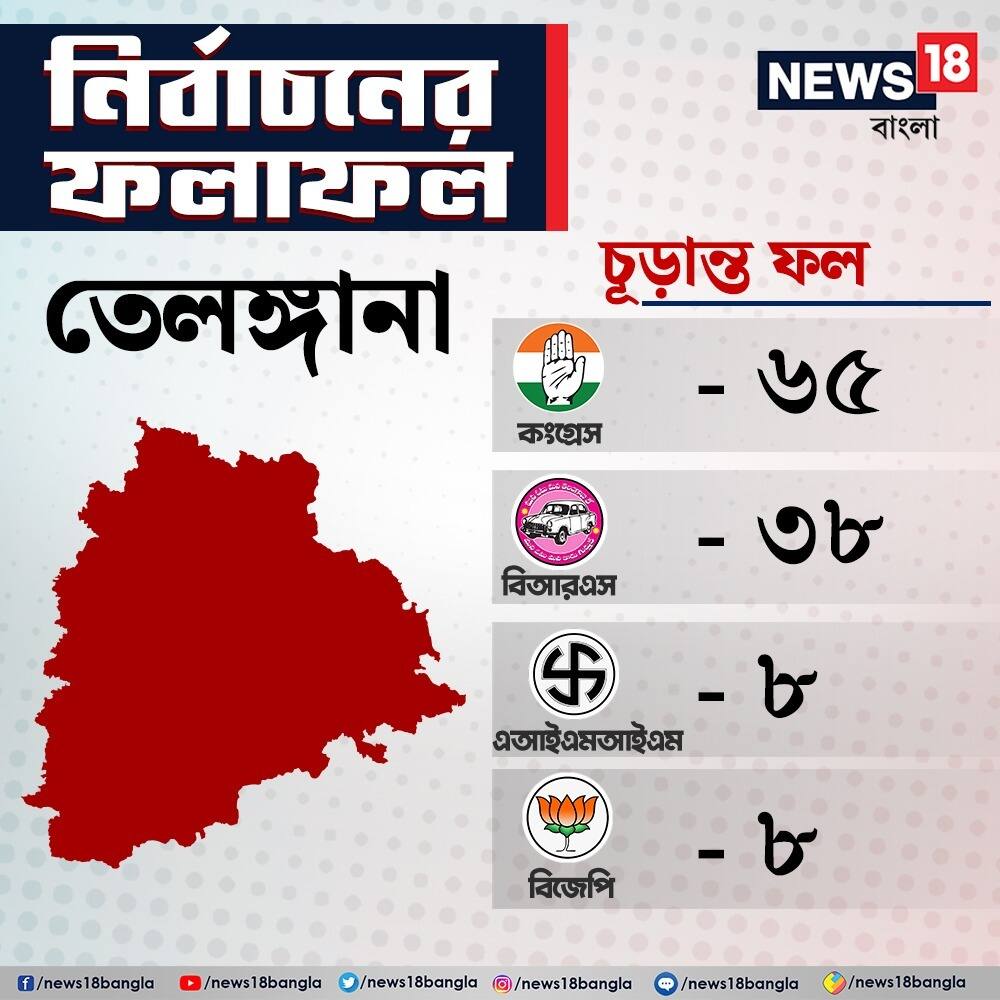 ১১৯টি আসনের মধ্যে কংগ্রেস জয়ী হয়েছে ৬৫টিতে৷ বিআরএস পেয়েছে ৩৮টি আসন৷ বিজেপি এবং অন্যান্যরা জয়ী হয়েছে ৮টি করে আসনে৷
