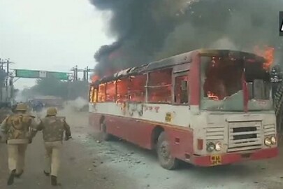 Sambhal: A State Transport bus set ablaze, allegedly during protest against #CitizenshipAmendmentAct. More details awaited. pic.twitter.com/rtjO2rEF1A
