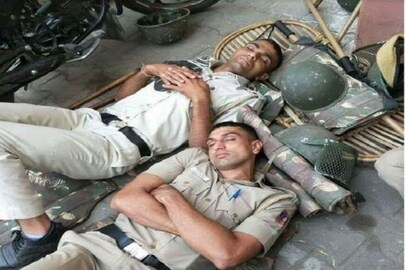 বাড়ি ফেরার সময় নেই, কড়া ডিউটির মাঝে রাস্তাতেই ঘুমাচ্ছেন পুলিশ কর্মীরা