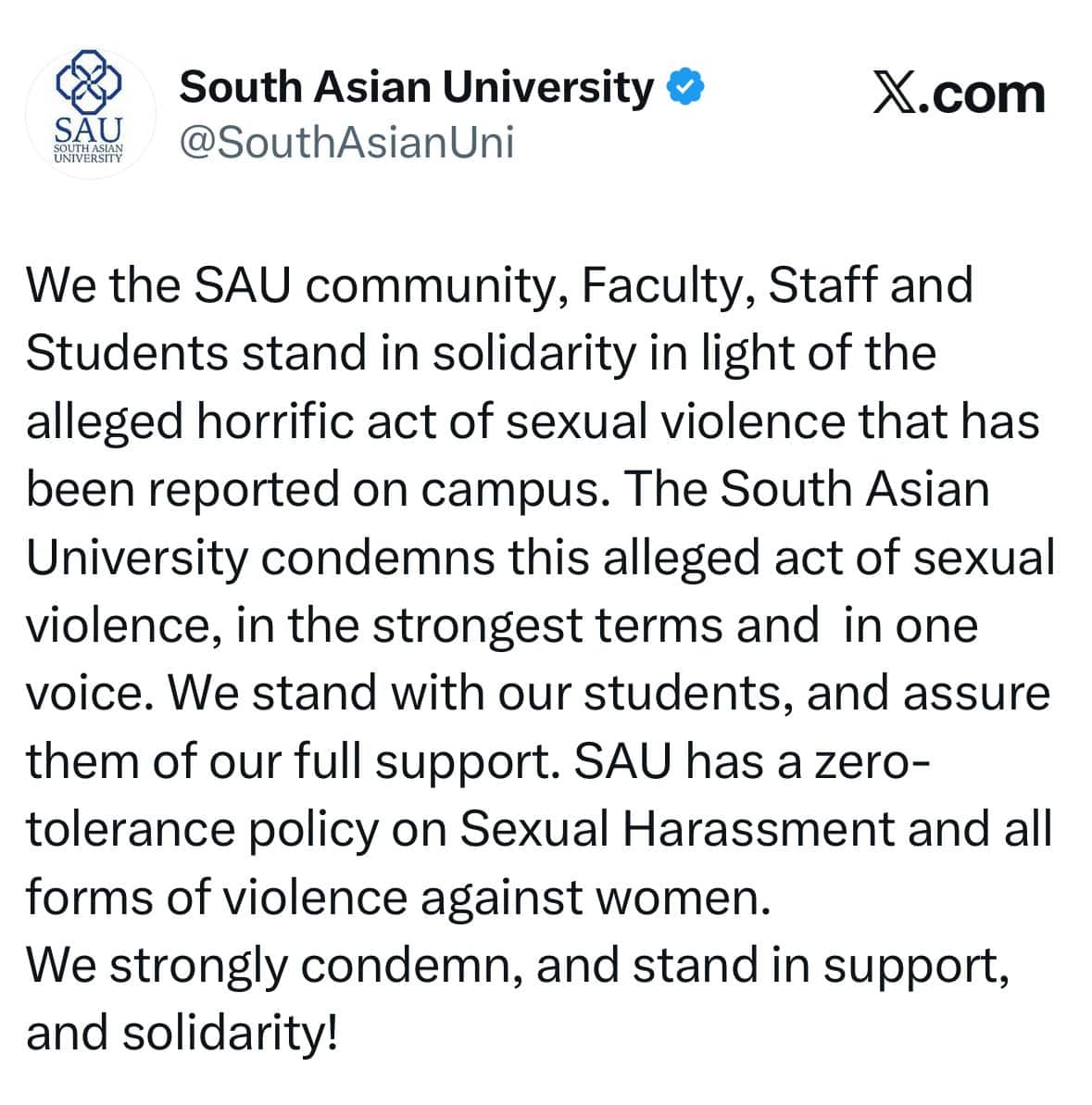 সূত্রের খবর, ঘটনায় ইতিমধ্যে এফআইআর রুজু করে তদন্ত শুরু করেছে দিল্লি পুলিশ। ঘটনা ঘটে রবিবার বিকেলে। অভিযোগ, অডিটোরিয়াম চত্বর থেকে ক্যান্টিনের দিকে যাওয়ার সময় চারজন পুরুষ ওই ছাত্রীকে জাপটে ধরে। তাঁর পোশাক ছিঁড়ে দিয়ে শারীরিক ভাবে হেনস্থা করা হয়।