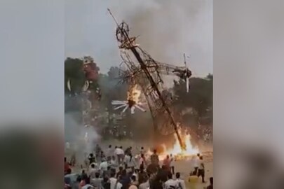 ভিডিওতে দেখা যায় যে রাবণ দহনের সময়ে কুশপুত্তলিকার কাছে দাঁড়িয়ে ছিল একাধিক মানুষ। জলন্ত কাঠামোটি পড়তে শুরু করতেই ছোটাছুটি লেগে যায়। পালাতে শুরু করে সবাই।