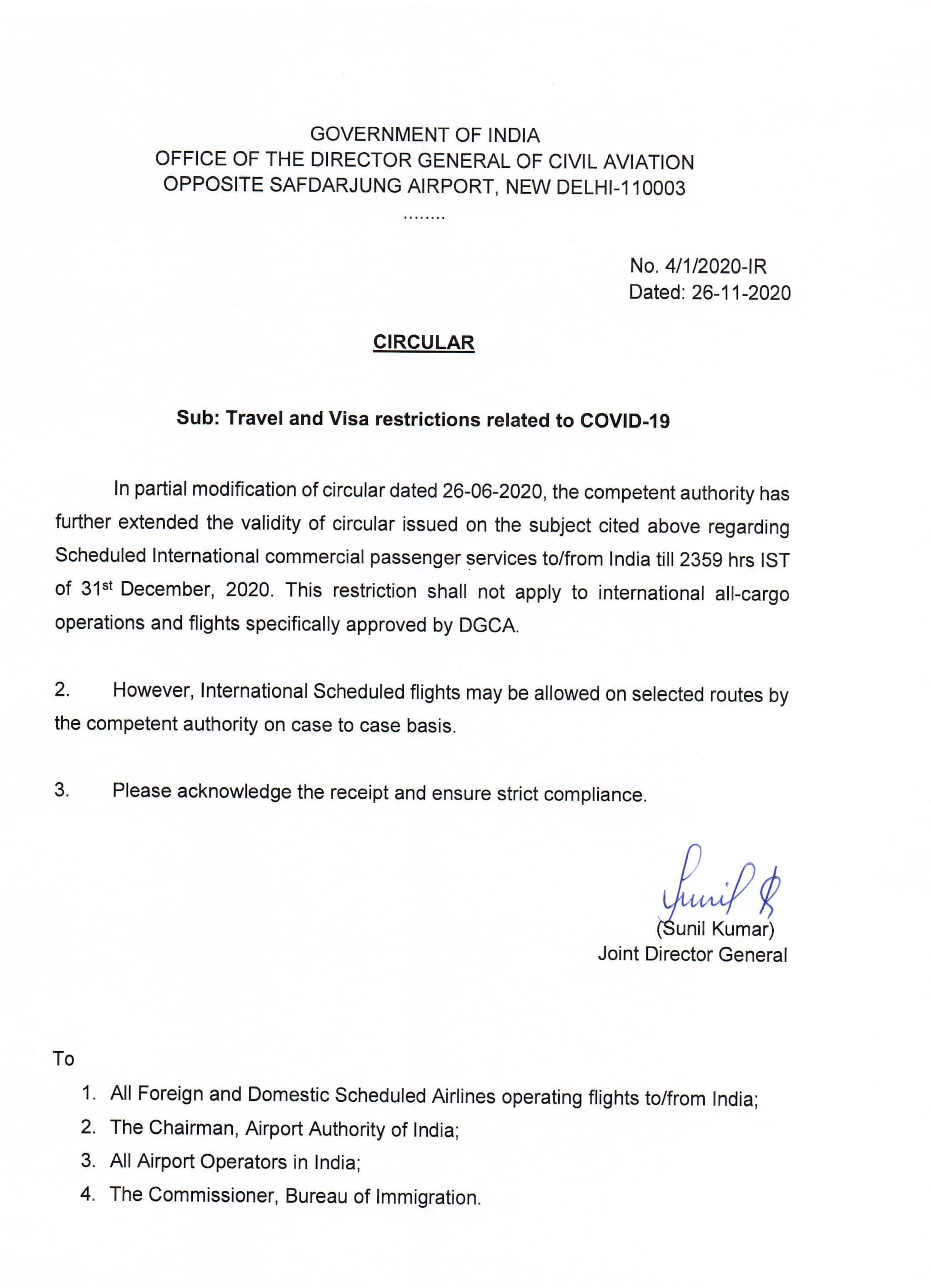 ডিজিসিএ-র এক কর্তার মতে, "পরিস্থিতি যে দিকে এগোচ্ছে, তাতে ভ্যাকসিন চালু হওয়া না পর্যন্ত আন্তর্জাতিক উড়ান পুরোদস্তুর চালু করা যাবে না বলেই মনে হচ্ছে।" ওই কর্তার বক্তব্য, এমনিতেই কোভিড হামলায় সবচেয়ে বেশি ক্ষতিগ্রস্ত হয়েছে বিমান পরিষেবা।এই অবস্থায় পরিস্থিতি যত দেরিতে স্বাভাবিক হবে ততই মুখ থুবড়ে পড়বে বিমান শিল্প।
