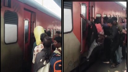 Indian Railways: ট্রেন নাকি মরণ কুয়া! দরজা পর্যন্ত ঠাসাঠাসি মানুষ, কামরার দরজায় লক, তারপরেও প্ল্যাটফর্ম থেকে সিঁড়িতে ঝুলে লাথি, ভয়ানক ভিডিও