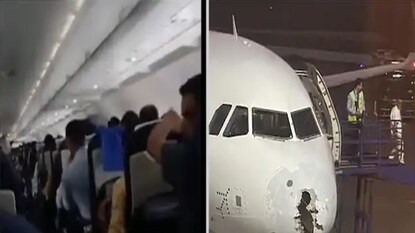 Indigo flight 6E-2142 from Delhi to Srinagar got caught in a severe hailstorm.