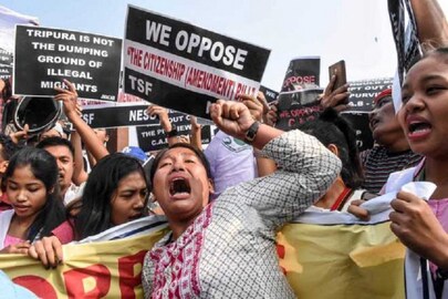 Tripura: People stage protest against #CitizenshipAmendmentBill2019 in Agartala. pic.twitter.com/my5Bjqb5wB — ANI (@ANI) December 11, 2019