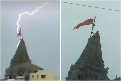 Lightning struck Dwarkadhish Temple|| অশনি সংকেত! দ্বারকাধিশ মন্দিরে ভয়ঙ্কর বজ্রপাত, ক্ষতিগ্রস্ত মন্দিরের ধ্বজা