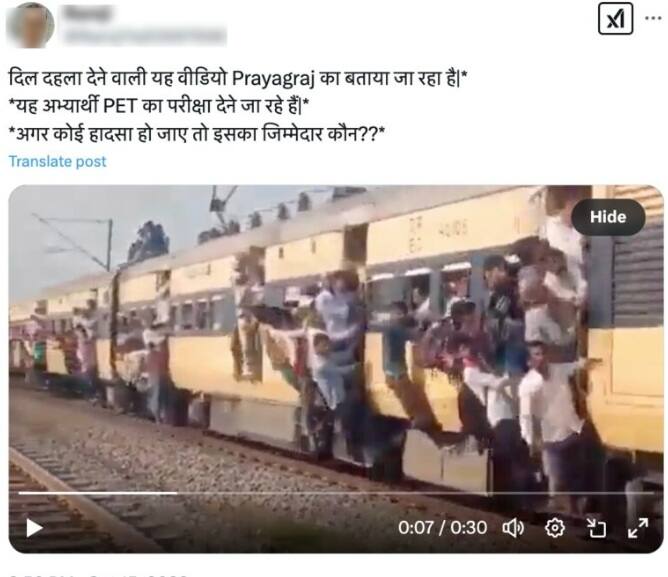 এই প্রেক্ষাপটে, সোশ্যাল মিডিয়ায় একটি ভিডিও ভাইরাল হয়েছে যেখানে দেখা যাচ্ছে যে একটি ভিড় ট্রেনে লোকজন দরজায় ঝুলন্ত এবং এমনকি উপরেও বসে রয়েছেন৷ দাবি করা হচ্ছে যে এটি একটি মহাকুম্ভে যাওয়ার ট্রেন। আসুন এই ভিডিওর পিছনের সত্যতা তদন্ত করি।