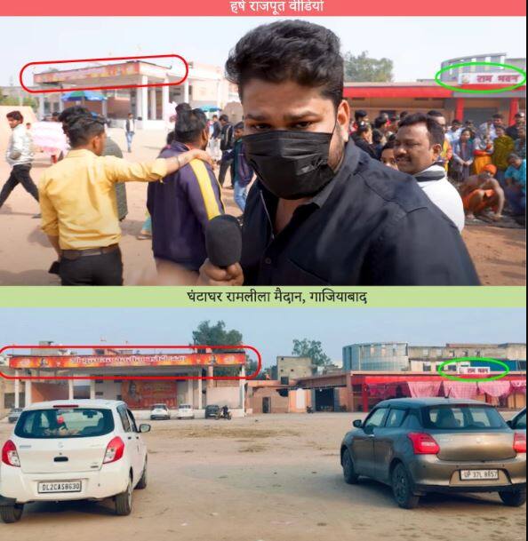 যেহেতু প্রমাণিত হয়েছে যে ভিডিওটি স্ক্রিপ্টেড, তাই আমরা জানার চেষ্টা করেছি যে ভিডিওটি কোথায় রেকর্ড করা হয়েছে। ভিডিওটি ভালো করে দেখার পর আমরা দেখতে পেলাম, “সুল্লামাল রামলীলা কমিটি” এবং “রাম ভবন” লেখা। এই তথ্যের ভিত্তিতে যখন আমরা অনুসন্ধান করি, তখন আমরা এর অবস্থানও খুঁজে পাই। আসলে, এই জায়গাটি গাজিয়াবাদের ঘণ্টাঘর রামলীলা মাঠ। গুগল ম্যাপে ঘণ্টাঘর রামলীলা ময়দানের ছবিগুলি ভিডিওতে দেখানো স্থানগুলির সঙ্গে তুলনা করে স্পষ্ট হয়ে ওঠে যে দুটি স্থানই একই। এইভাবে, এটা স্পষ্ট হয়ে ওঠে যে গাজিয়াবাদে রেকর্ড করা একটি স্ক্রিপ্টেড ভিডিও মহাকুম্ভের ভিডিও হিসেবে শেয়ার করা হচ্ছে।