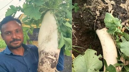 Giant Radishes: ৫ কেজি ওজনের মুলো ফলিয়ে তাক লাগালেন৷ কোলেওয়াড়ি গ্রামে তাঁর জমিতে রাক্ষুসে মুলো দেখতে উপচে পড়ছে ভিড়