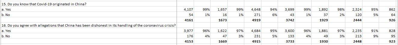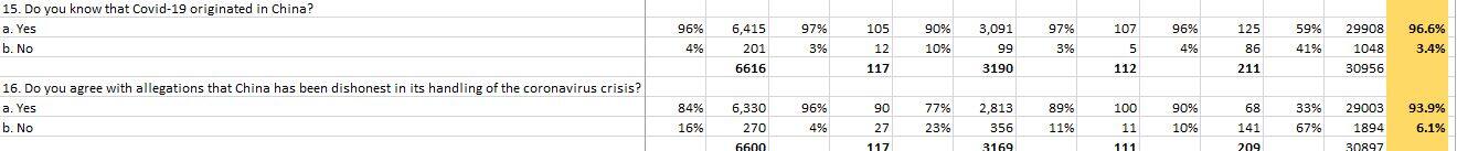 বিভিন্ন ভাষাভাষী মানুষের মতামতের মধ্যে দেখা গিয়েছে ৯৫ শতাংশ মানুষ মনে করেন চিনই মারণ ভাইরাসকে নিয়ন্ত্রণ করতে পারেনি ৷ বাকি ৫ শতাংশ ভারতীয়রা চিনকে দায়ী বলে মনে করেন না ৷