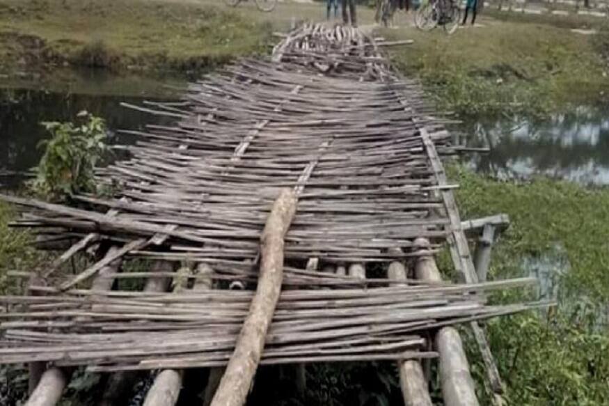 গ্রামের একমাত্র বাঁশের ব্রিজ ভেসে গেছে বন্যায়, ইলেকট্রিক তার ধরে যাতায়াত গ্রামবাসীদের