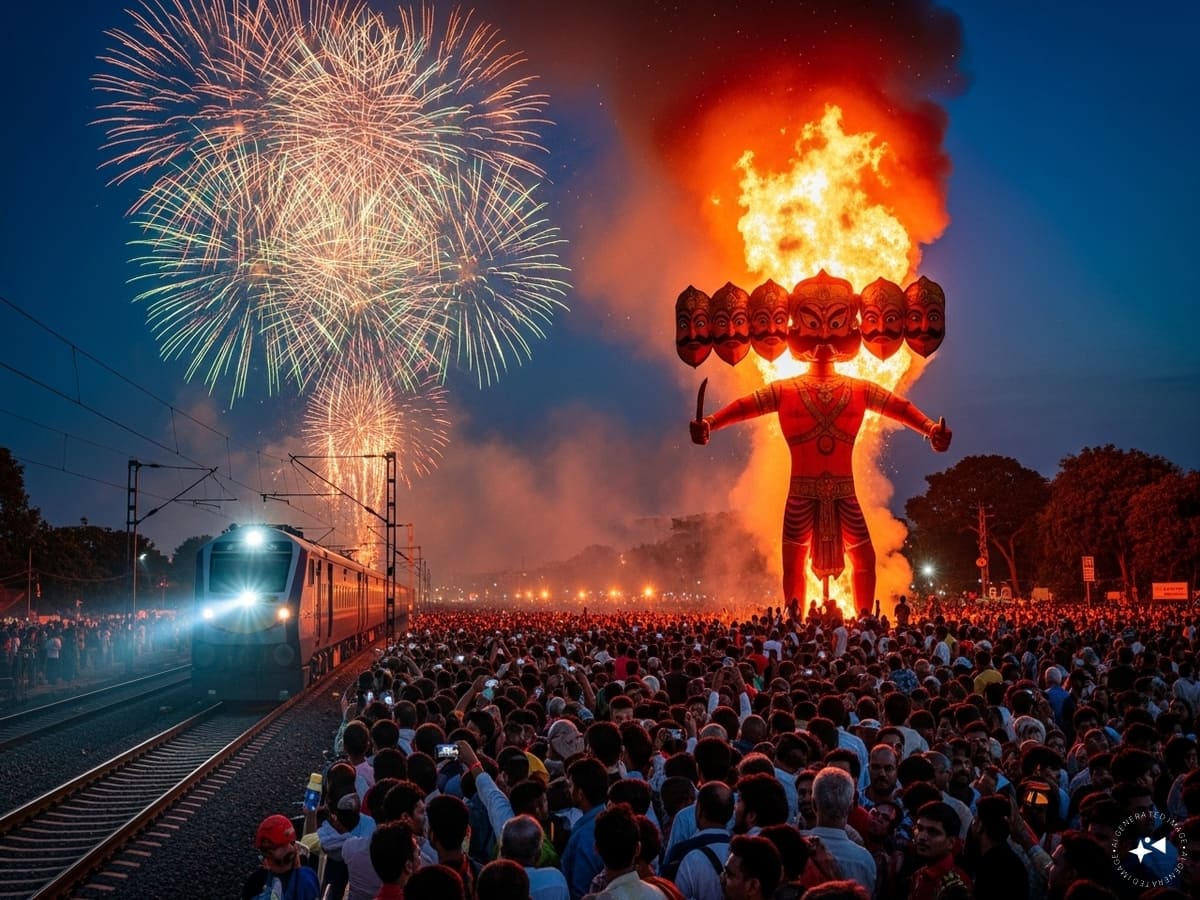 সন্ধ্যা প্রায় ৭টার সময় রাবণের পুতুলে আগুন দেওয়া হয়। মুহূর্তের মধ্যে আকাশ ভরে যায় রঙিন আতসবাজিতে—স্কাইশট, রঙিন আলো, তীব্র শব্দে পুরো এলাকা গমগম করতে থাকে। মানুষ এতটাই মগ্ন ছিল উৎসবের রঙে যে কেউ খেয়ালই করেনি, পাশের রেললাইনে একটা ট্রেন দ্রুত এগিয়ে আসছে।