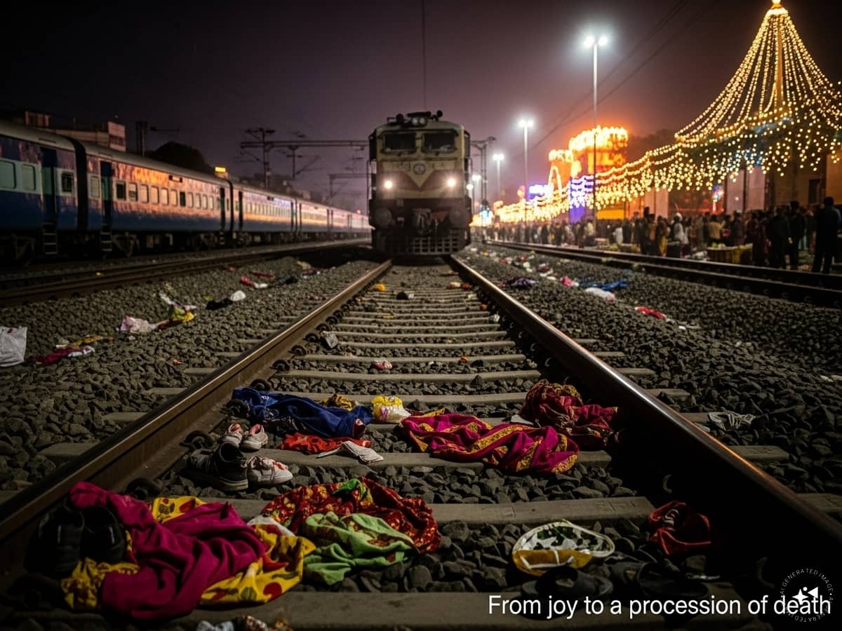 এক মুহূর্তেই উৎসব মাটি। রঙিন আলোর নীচে রক্তে রাঙা রেললাইন। শিশুর কান্না, আহতদের আর্তনাদ, মোবাইল টর্চের আলোয় স্বজন খুঁজে বেড়াচ্ছে মানুষ। চারিদিকে শুধুই বিশৃঙ্খলা।