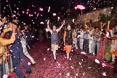 PM Modi attacks Congress in election victory speech: এ দিন গুজরাতে জয় এবং হিমাচলে পরাজয়ের পরে দিল্লির দলীয় কার্যালয়ে পৌঁছন প্রধানমন্ত্রী নরেন্দ্র মোদি। তাঁকে ফুলের পাঁপড়ি বৃষ্টির মাধ্যমে স্বাগত জানান দলীয় সমর্থকরা। কার্যালয়ে পৌঁছে দলীয় কর্মীদের ধন্যবাদ জ্ঞাপন করেন।