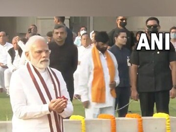 #WATCH | Delhi: PM Narendra Modi pays tribute to Mahatma Gandhi at Rajghat on #GandhiJayanti