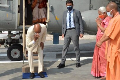 #কানপুর: রাষ্ট্রপতি রাম নাথ কোবিন্দ (President Ram Nath Kovind) দেশের প্রথম নাগরিক হওয়ার পর থেকে নিজের গ্রামের বাড়িতে আর পা রাখেননি। রাইসিনা হিলসের কড়া নিরাপত্তায় দিন কাটে তাঁর। তবে রবিবার উত্তরপ্রদেশের কানপুরে নিজের গ্রাম পরাউঙ্খে পা রেখে একেবারে নস্ট্যালজিক হয়ে পড়লেন তিনি। বিমান থেকে নেমেই জন্মভিটের মাটি মাথায় ছুঁইয়ে প্রণাম করেন তিনি। কানপুরের দেহাতের এই গ্রামে আসার সময় তাঁকে স্বাগত জানাতে হাজির হয়েছিলেন মুখ্যমন্ত্রী যোগী আদিত্যনাথ ও রাজ্যপাল আনন্দীবেন পটেল।