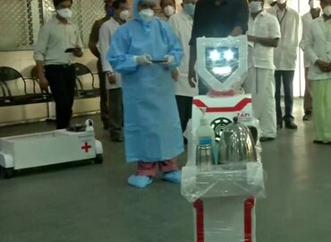 Tamil Nadu: Robots have been deployed at Chennai's Government Stanley Medical College and Hospital to serve food and medicines to #COVID19 positive or possibly infected persons. pic.twitter.com/c4hxxOI14r