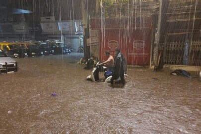 #মুম্বই: মুম্বইতে হওয়া মুষলধারে বৃষ্টির জেরে একাধিক জায়গায় জল জমে গিয়েছে ৷ রাস্তায় প্রায় হাঁটু জল জমে গিয়েছে ৷ এর জেরে প্রচুর গাড়ি আটকে রয়েছে ৷ বহু জায়গায় মানুষ আটকে গিয়েছে ৷ পুলিশ স্থানীয় মানুষের সাহায্যে তাদের উদ্ধার করেছেন এবং সুরক্ষিত জায়গায় পৌঁছে দিয়েছেন ৷ অতিভারী এই বৃষ্টির জেরে ট্রেন পরিষেবাও ব্যাহত হয়েছে ৷