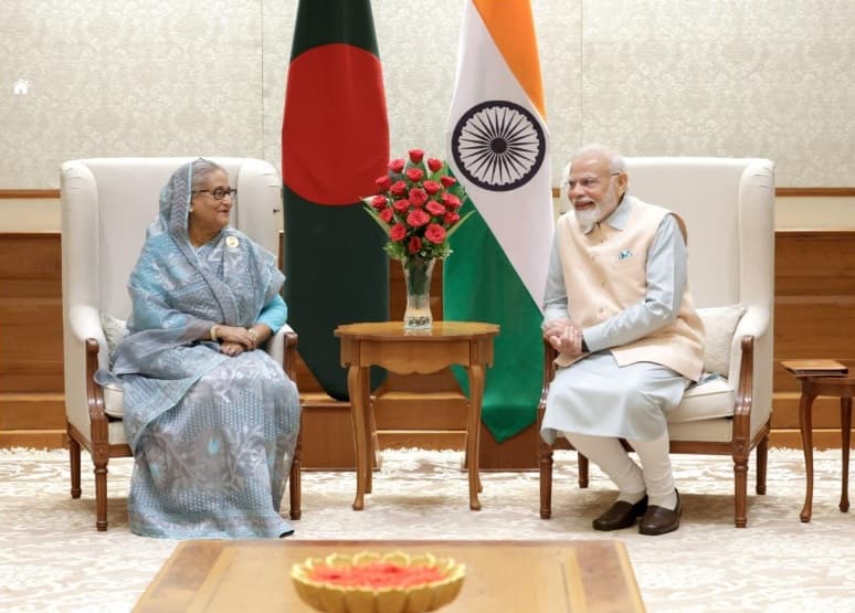 এরপর শেখ হাসিনার অংশটি গুগল লেন্সে সার্চ করা হলে তাঁর একই পোশাকে একই ভাবে চেয়ারের অন্য় দিকে বসে থাকার ছবি পিআইবি-র ওয়েবসাইটেই পাওয়া যায়। ২০২৩ সালের ৮ সেপ্টেম্বর এই ছবি প্রকাশ করে লেখা হয় যে, ছবিটি প্রধানমন্ত্রী নরেন্দ্র মোদীর সঙ্গে শেখ হাসিনার একটি দ্বিপাক্ষিক বৈঠকের দৃশ্য।