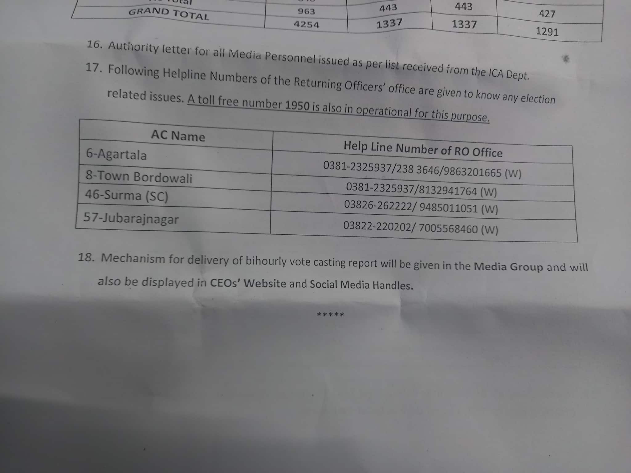 এই নির্বাচনে সর্বমোট ২৫ কোম্পানি কেন্দ্রীয় বাহিনী মোতায়েন করা হয়েছে। এ ছাড়া রয়েছে ত্রিপুরা স্টেট রাইফেলসের জওয়ানরাও। রাজ্যের চার কেন্দ্রের জন্য চালু করা হয়েছে ভোটার হেল্পলাইন। ফোনে ও হোয়াটসঅ্যাপে জানানো যাবে অভিযোগ। সাহায্য চাওয়া যাবে নির্বাচন সংক্রান্ত।