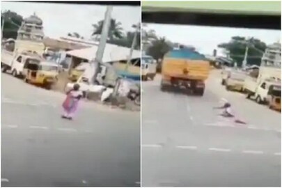 Elderly #Indian woman run over by truck miraculously escapes unscathed pic.twitter.com/AFGq2uYf3e