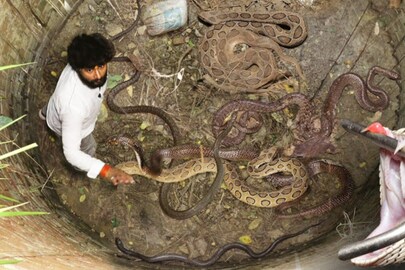 কিন্তু ভিডিওতে দেখা যায় ওই ব্যক্তি একা সাপের কুয়োর ভিতরে নেমে পড়ে। নেমে প্রথমে কোন কোন সাপ রয়েছে তার বিবরণ দেয়। তারপর বিপজ্জনক সাপের মাঝে দাঁড়িয়ে সে একের পর এক সব সাপকে বস্তায় ভরতে থাকেন। সাপগুলিকে সে হাত দিয়েও ধরে। তিনি যখন এই দুঃসাধ্য কাজ করছেন তখন কুয়োর উপর গ্রামবাসীদের ভিড়। সকলেই দেখছেন কীভাবে প্রাণের ঝুঁকি নিয়ে ওই ব্যক্তি সাপগুলিকে ধরছেন। প্রত্যেকটি সাপকে বস্তাবন্দি করে উপরে উঠে আসেন ওই ব্যক্তি।