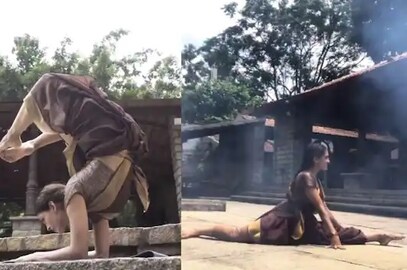 ভিডিওটি শেয়ার করেছেন রুক্মিণী বিজয়কর। যেখানে দেখা যাচ্ছে শাড়ি পরেই স্ট্রেচ, হেডস্ট্যান্ড, কার্ট-হুইলের মতো কঠিন স্টেপ সাবলীল ভাবে
