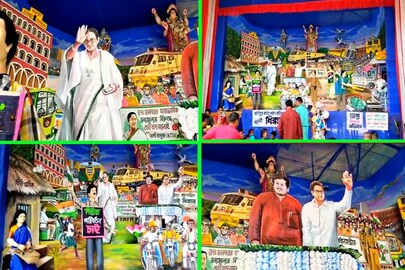 বনগাঁ নিউ মার্কেট এলাকায় আয়োজন করা বিশ্বকর্মা পুজোয় থিম দিল্লিতে পরিবর্তন চাই। মনিপুরের ঘটনা নিয়ে প্রধানমন্ত্রীকে ধিক্কার, পেট্রল-ডিজেলের মূল্যবৃদ্ধি সহ একাধিক ইস্যুকে পুজোর থিমের মধ্য দিয়ে তুলে ধরে কেন্দ্রের বিরুদ্ধে সোচ্চার হতে দেখা গিয়েছে বনগাঁ সংগঠনিক জেলা আইএনটিটিইউসি-এর নেতাদের। যদিও এমন থিমকে বাঙালির কৃষ্টি-সংস্কৃতির অবমাননা বলে ব্যাখ্যা করেছে বিরোধিতা। সেই সঙ্গে অভিযোগ এই পুজো আয়োজনের জন্য প্রত্যেক গাড়ি পিছু ১৫০ টাকা করে তোলা হয়েছে, যা থেকে প্রায় ২ কোটি টাকা উঠেছে! এদিকে এই থিম বেশ সাড়া ফেলে দিয়েছে। তা দেখতে ভিড় করছে দূর দূরান্তের মানুষ।