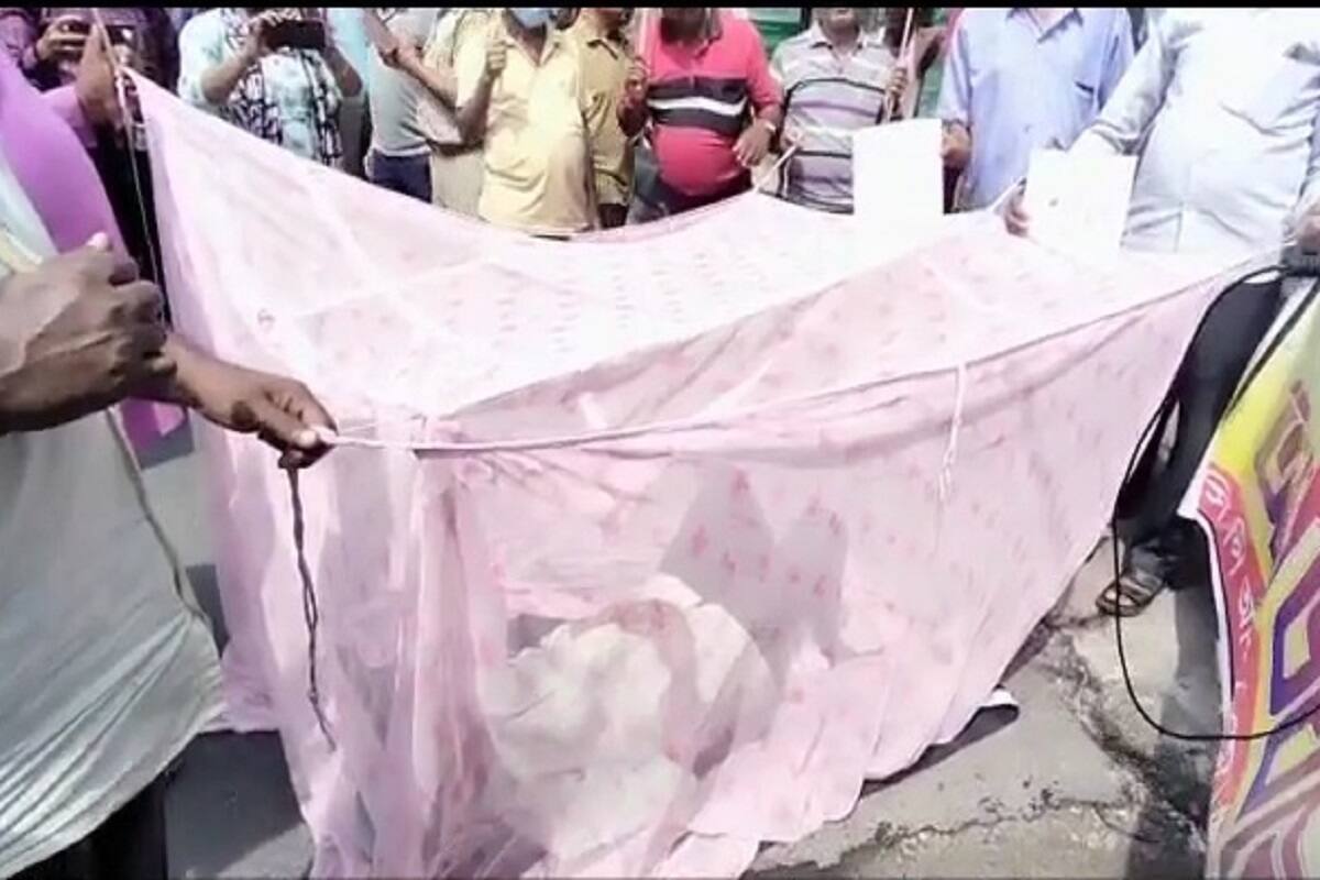 শহরজুড়ে বাড়ছে ডেঙ্গির প্রকোপ। লাফিয়ে লাফিয়ে বাড়ছে আক্রান্তের সংখ্যা। পুরসভা দ্রুত উদ্যোগী না হলে লাগাতার আন্দোলনের হুঁশিয়ারি সিপিএমের। আজ পুরসভার ২ নং বরো ঘেরাও করে তারা। বুরো অফিসের সামনে মশার হাত থেকে বাঁচতে মশারি টাঙিয়ে অভিনব প্রতিবাদ করে তারা।