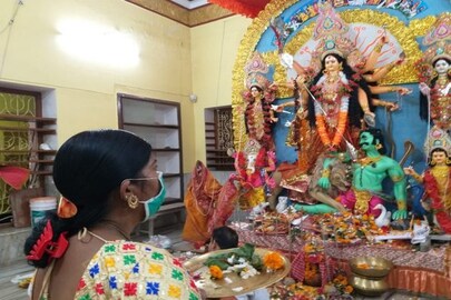 পুরোহিত ও ভক্তের মুখে মাস্ক ! জনশূন্য ভারত সেবাশ্রম সংঘে নিয়মরক্ষার বাসন্তী পুজো !