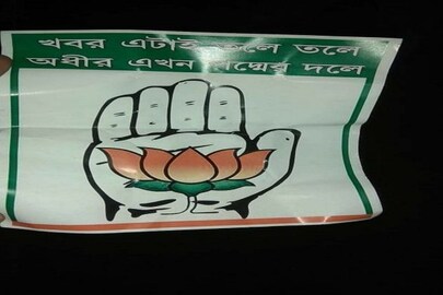 #ডোমকল: শীতের ঘুম থেকে উঠে ডোমকলবাসীর চোখ পরল দেওয়ালে। দেওয়ালে সাঁটানো পোস্টার। তাতে আঁকা কংগ্রেসের প্রতীক চিহ্নের মাঝে বিজেপির পদ্মফুল। সঙ্গে লেখা, "খবর এটাই তলে তলে অধীর এখন পদ্মের দলে"। বুঝতে অসুবিধা হয়নি ইঙ্গিত এর তীর কংগ্রেস নেতা অধীর চৌধুরীর দিকে। আর তাতেই রাজনৈতিক শোরগোল ডোমকলের ভাতসালা বাজার এলাকায়। কংগ্রেস নেতৃত্বের দাবি কংগ্রেসের বিরুদ্ধে অপপ্রচার ছড়াতেই বিরোধীদের বিভ্রান্তিকর এই পোস্টার।
