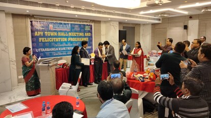 শিলিগুড়ি : শিলিগুড়িতে উত্তরবঙ্গ ক্ষেত্রীয় গ্রামীণ ব্যাংক ও পেনশন ফান্ড ডেলেটরি অথরিটির যৌথ উদোগে প্রধান মন্ত্রী অটল পেনশন যোজনার উপর একটি টাউন হল আলোচনা ও সম্বর্ধনা সভা আয়োজিত হল।