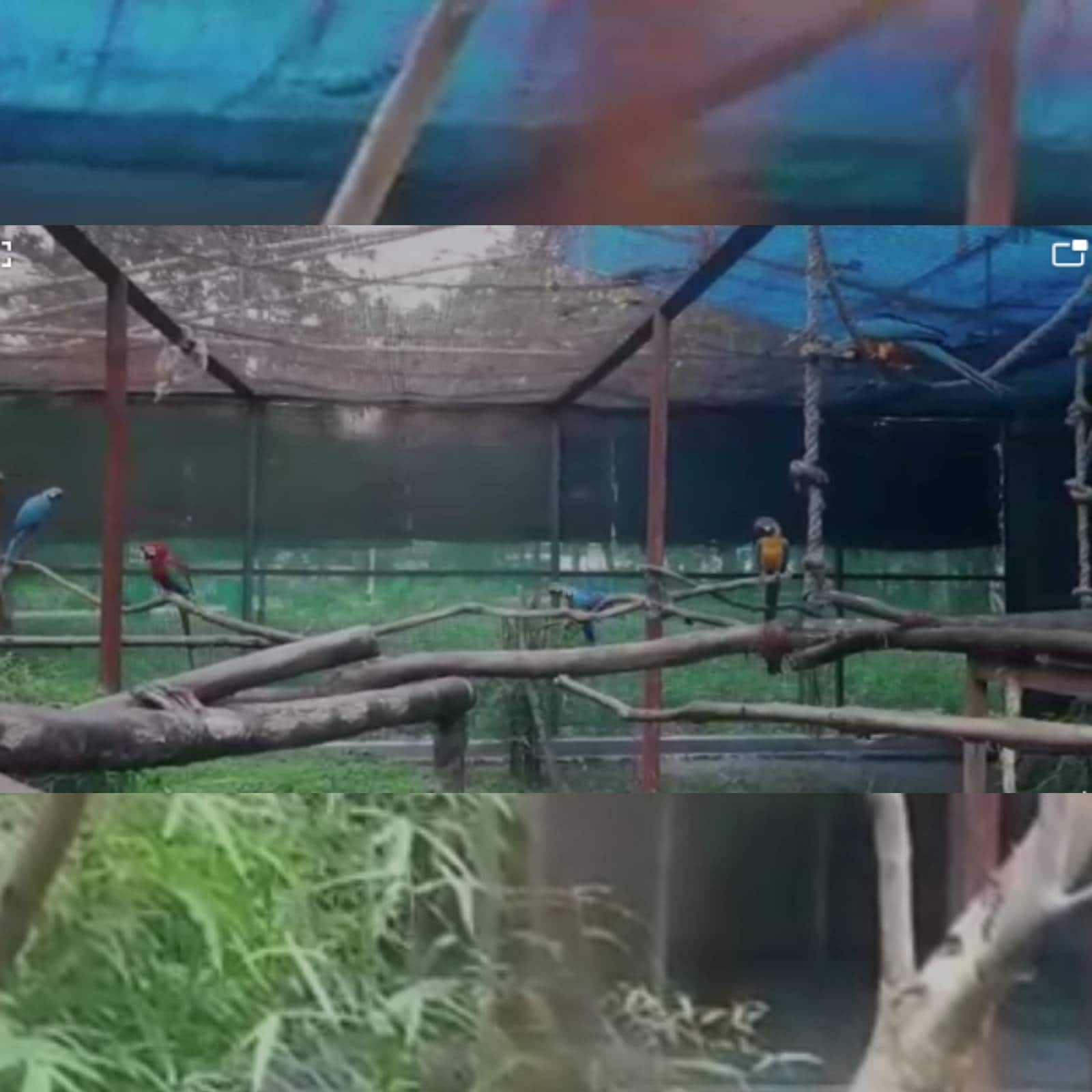 ১) ম্যাকাওদের এনক্লোজারের উপরে ত্রিপলের ছাউনি দেওয়া হয়েছে
