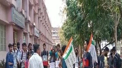 বারাণসীতে বাংলার মুখ্যমন্ত্রীকে কালো পতাকা ও বিক্ষোভ দেখানোর প্রতিবাদে ওয়েবকুপা ও তৃণমূল ছাত্র পরিষদের প্রতিবাদ মিছিল। (Mamata Banerjee in UP)