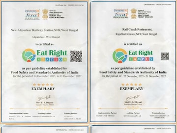 এছাড়াও, আলিপুরদুয়ার ডিভিশনের অধীনে তিনটি প্রতিষ্ঠানকে ২২ডিসেম্বর ২০২৫ থেকে ২১ ডিসেম্বর ২০২৭ সময়কালের জন্য ‘ইট রাইটক্যাম্পাস’ হিসেবে সার্টিফাইড করা হয়েছে, এবং সবগুলোই এক্সেম্পলারিরেটিং পেয়েছে। এর মধ্যে রাজাভাত খাওয়া এবং কোচবিহারের রেলমিউজিয়ামে অবস্থিত রেল কোচ রেস্তোরাঁর পাশাপাশি আলিপুরদুয়ারজংশনের মাল্টি-ডিসিপ্লিনারি জোনাল ট্রেনিং ইনস্টিটিউট রয়েছে।