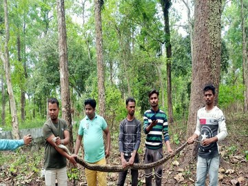 এদিকে অত বড় অজগর সাপ দেখে এলাকার মানুষের মধ্যে আতঙ্ক ছড়িয়ে পড়ে। কুইক রেসপন্স টিম এবং ন্যাসের সদস্য মনোহর হোসেন ও তাঁর দলের লোকজন গাছের ডাল কেটে অজগর সাপটিকে নামান এবং বস্তাবন্দি করে পাশের জঙ্গলে দেওয়া হয়।