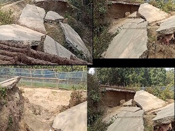 তৈরির চারমাসের মধ্যেই ভেঙে বসে গিয়েছে রাস্তা, বন্ধ চলাচল