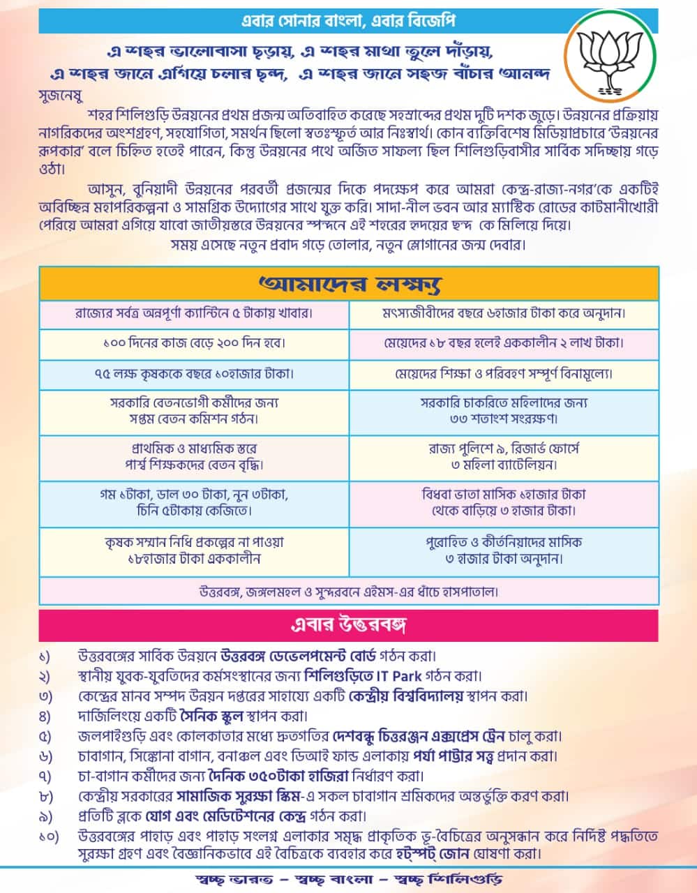 শিলিগুড়িকে স্মার্ট সিটি করা হবে, পৃথক সংকল্প পত্র প্রকাশ করলো গেরুয়া শিবির!