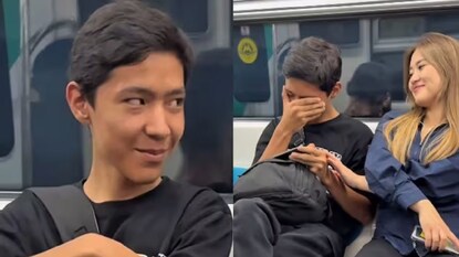 একটি ভাইরাল ভিডিওতে দেখা যাচ্ছে, মেট্রো ট্রেনের ভিতরে এক অচেনা মেয়ে হঠাৎ পাশের অচেনা ছেলেটিকে ছুঁতে শুরু করে। ছেলেটি লজ্জায় লাল হয়ে যায়। তারপর ছেলেটি মেয়েটির কানে কানে কিছু বলে—আর তার পরেই গল্প ঘুরে যায় অন্যদিকে।