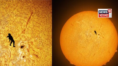 জ্যোতির্বিদ এমন এক ছবি তুলেছেন যে তা গোটা বিশ্বকে চমকে দিয়েছে। তাঁর তোলা সেই ছবিতে সূর্যের জ্বলন্ত পৃষ্ঠের সঙ্গে পুরোপুরি সামঞ্জস্যপূর্ণভাবে নীচে পড়তে থাকা এক স্কাইডাইভারের এক ছবি প্রকাশ্যে এসেছে, যা দেখে মনে হচ্ছে ঠিক যেন এই স্কাইডাইভার আমাদের চোখের সামনেই মহাকাশের শূন্যতার মধ্য দিয়ে গড়িয়ে পড়ছেন।