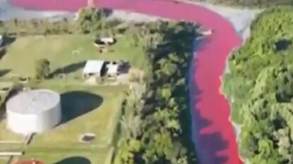On February 6, 2025, the Sarandí River Canal near Buenos Aires, Argentina, turned a striking red, causing alarm among local residents.