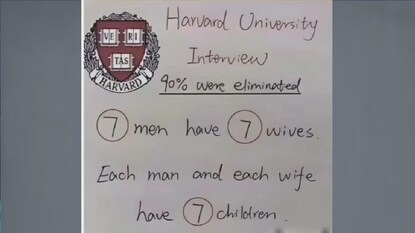 Harvard University- সেই ব্রেন টিজার অনুযায়ী, সাতজন পুরুষ, তাদের সাতজন স্ত্রী এবং তাদের প্রত্যেকের সাতটি করে সন্তান। তা হলে মোট মানুষের সংখ্য়া কত! আপনি কি ক্যালকুলেটর ব্যবহার না করে এই ধাঁধার সমাধান করতে পারবেন?