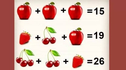 দেখা যাচ্ছে, তিনটি আপেলের যোগফল ১৫। ১টি আপেল, ১টি স্ট্রবেরি ও ২টি চেরির যোগফল ১৯। ২টি চেরি, ৩টি চেরি এবং ১টি স্ট্রবেরির যোগফল ২৬। তাহলে ১টি চেরি + আড়াই খানা স্ট্রবেরি / ১টি আপেল = কত হবে? আর এটাই মাত্র ৯ সেকেন্ডের মধ্যে হিসেব কষে বার করতে হবে। বিষয়টা কিন্তু খুব একটা কঠিন নয়। এর জন্য অবশ্য বিশ্লেষণের ভাল ক্ষমতা থাকতে হবে। কথায় কথায় তো সময় প্রায় ফুরিয়ে এল। যদি সমাধান না আসে, তাতেও সমস্যা নেই। কারণ আমরাই সমাধান বলে দিচ্ছি।