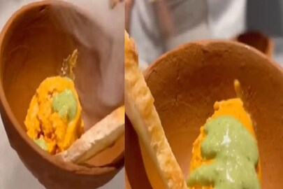 ভিডিওতে দেখা গিয়েছে, এক ব্যক্তি একটি মাটির পাত্রে বাটার চিকেন আইসক্রিম ঢালছেন। শুধু তাই নয় আইসক্রিমের উপরে আবার পুদিনার চাটনিও ঢালছেন ওই ব্যক্তি। এই আশ্চর্যজনক ভিডিও দেখে শোরগোল পড়ে গিয়েছে নেট দুনিয়ায় ৷