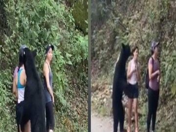জঙ্গলে বেড়াতে গিয়ে বিপত্তি, একদল মহিলার পথ আটকাল ভাল্লুক, ভিডিও দেখে অবাক হবেন