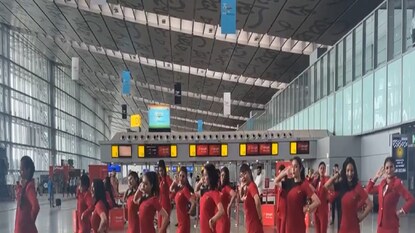 Viral Video, Airhostess danced at Dumdum Airport with Tapatini Song: ভিডিওতে দেখা গিয়েছে লাল-কালোর মিশেলে পরা শর্ট ড্রেসে একঝাঁক বিমানসেবিকা কলকাতা বিমানবন্দরে নাচছেন 'টাপাটিনি' গানের সঙ্গে। আশপাশ থেকে ভেসে আসছে উপস্থিত দর্শকদের উন্মাদনাও।