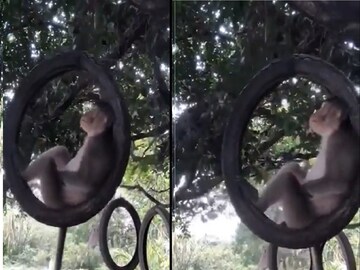 আরামে দোলনায় ঝুলছে বাঁদর! ঠিক যেন সিনেমার দৃশ্য, ভিডিওটি শেয়ার হওয়া মাত্রই ঝর তুলেছে নেট মাধ্যমে