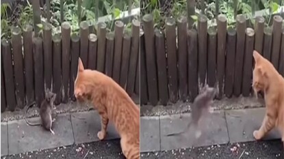 রাগের চোটে ইঁদুরকে থাবা, ভয় না পেয়ে বিড়ালের দিকে তেড়ে গেল ইঁদুর, মজার ভিডিও দেখে হতবাক নেটিজেনরা